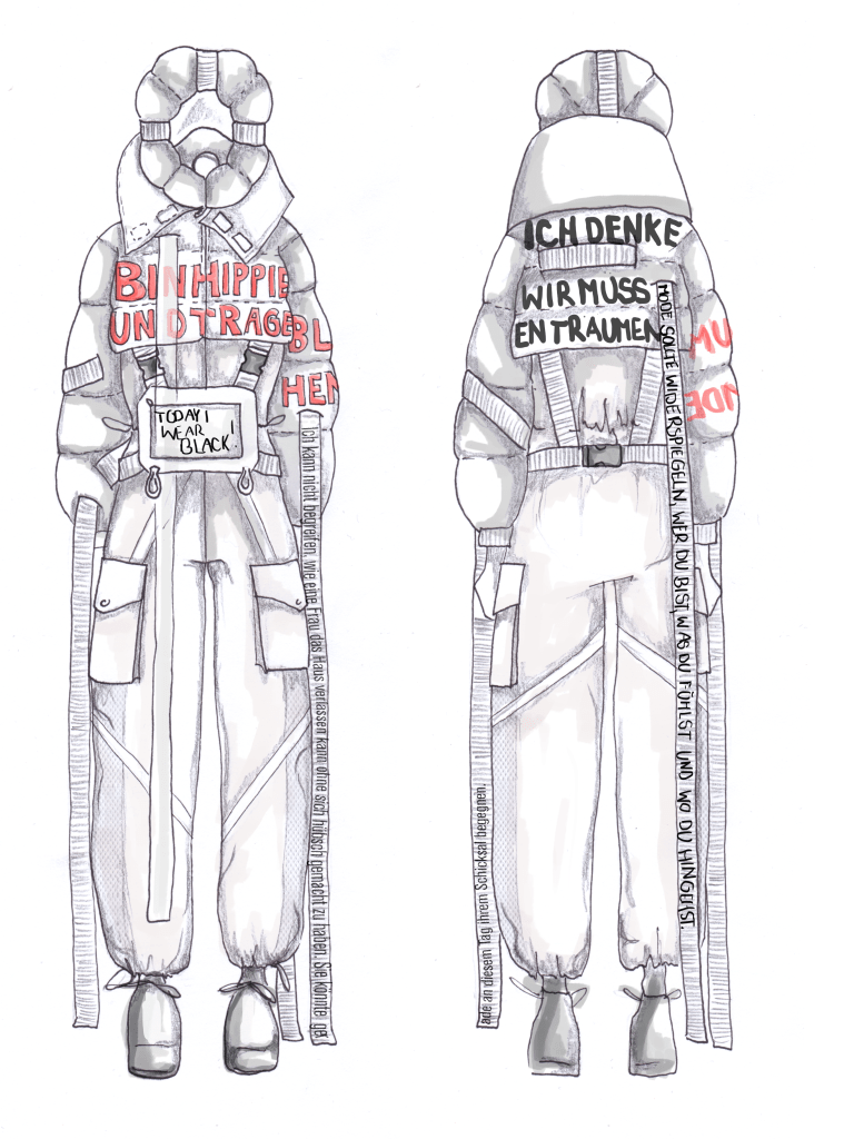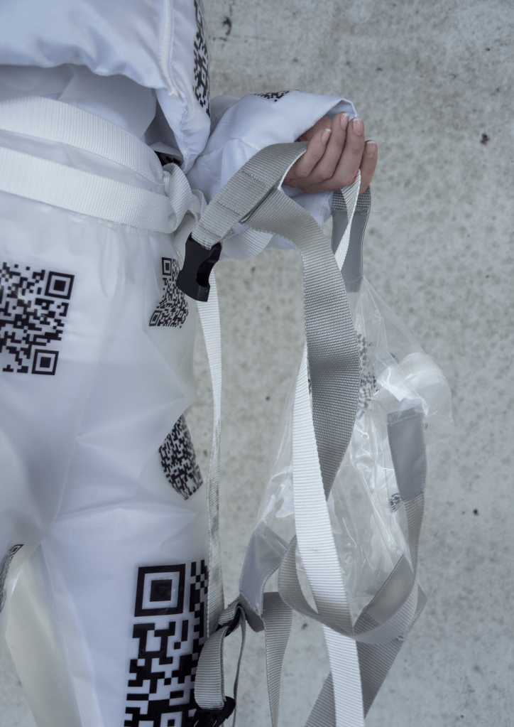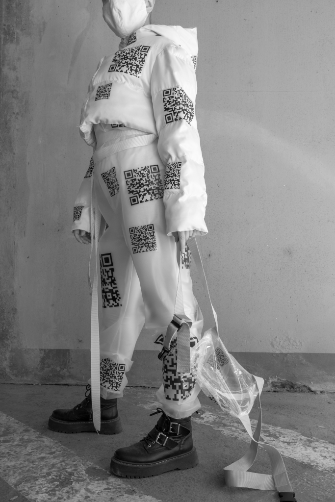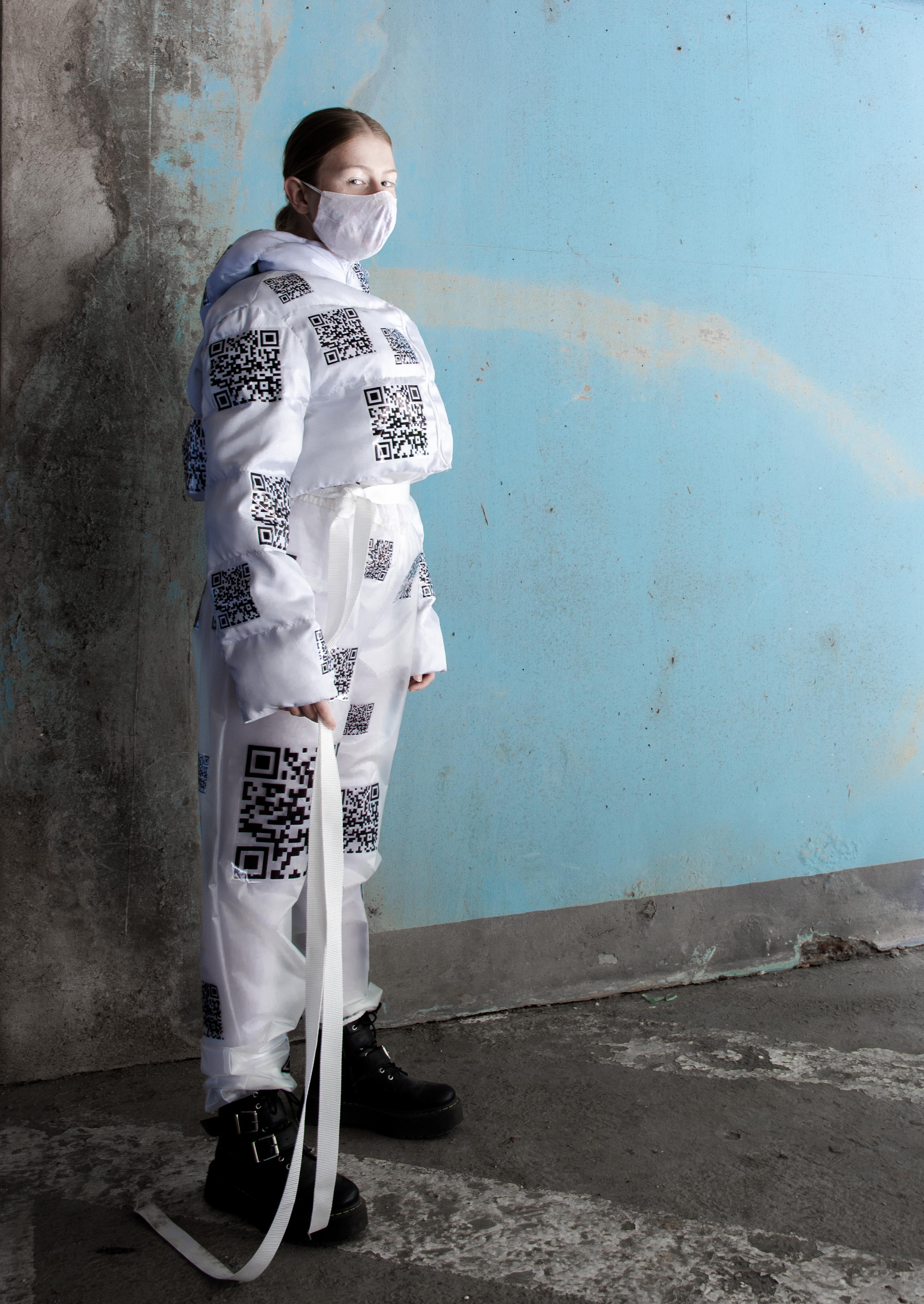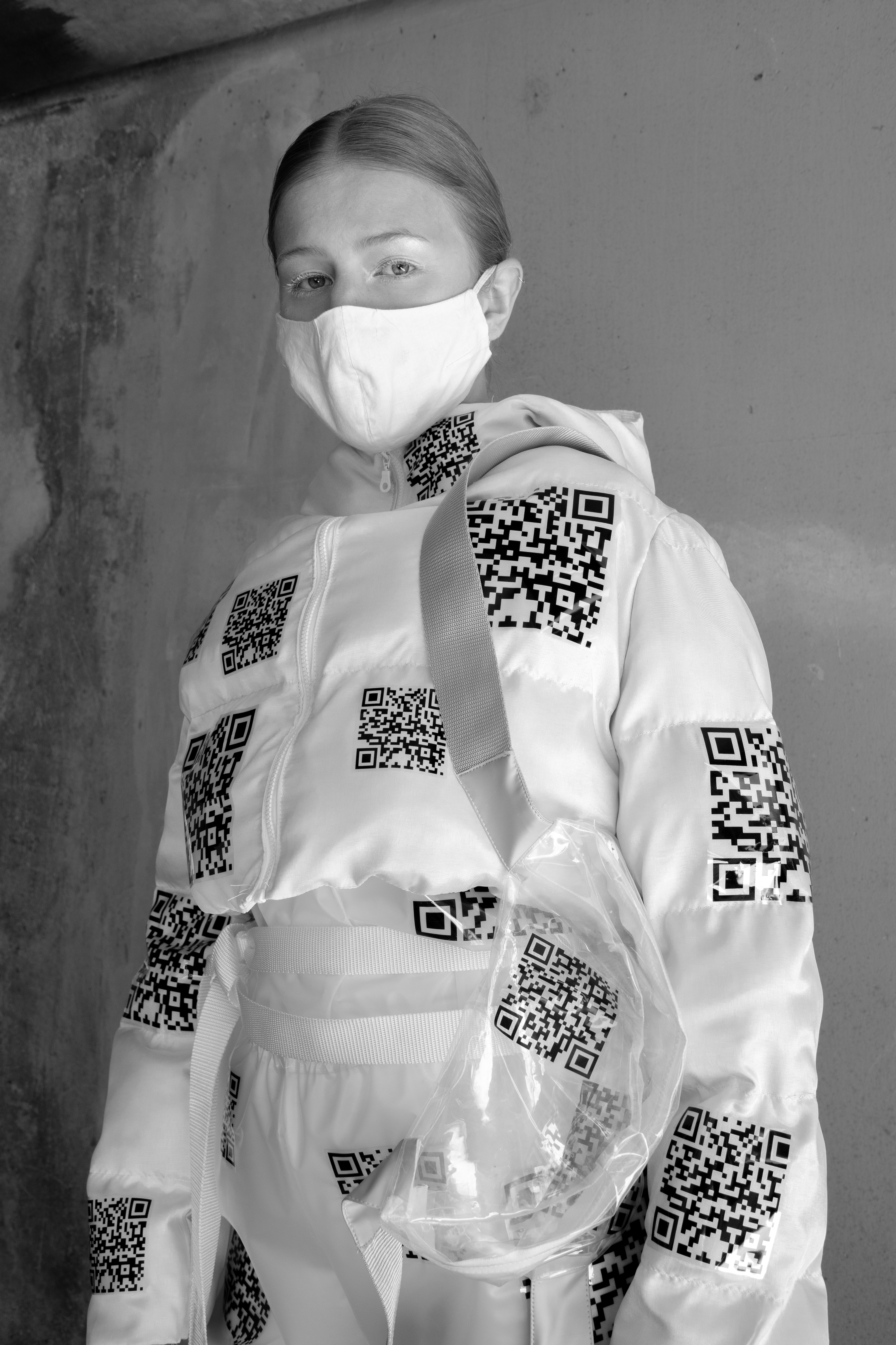 UCode was inspired by the then upcoming Covid-19 crisis at that time. I asked myself how our clothing could look like, if there would be much more risks in our environment. I created a uniform that should protect ourselves. Furthermore I had the dystopian idea that every person’s data is collected in a system and can be accessed by an individual QR-Code. That code is placed all over the uniform and readable from every direction.