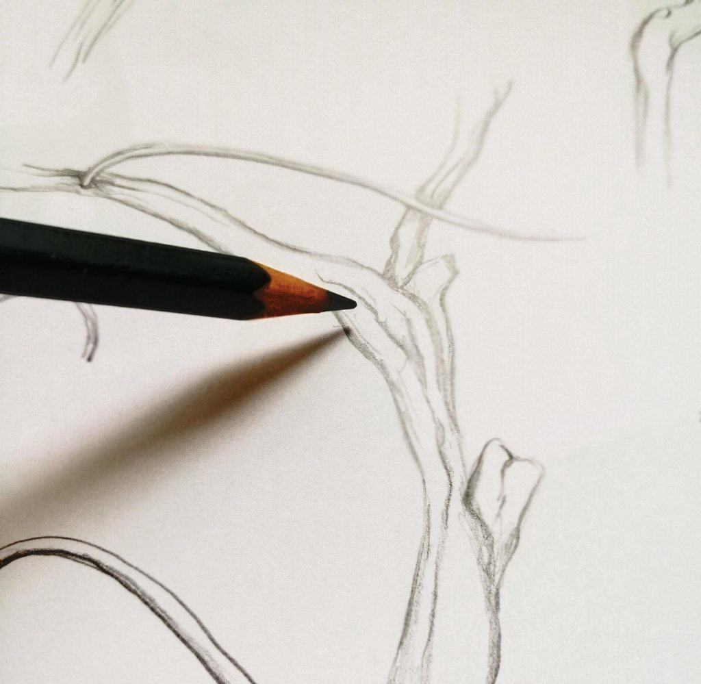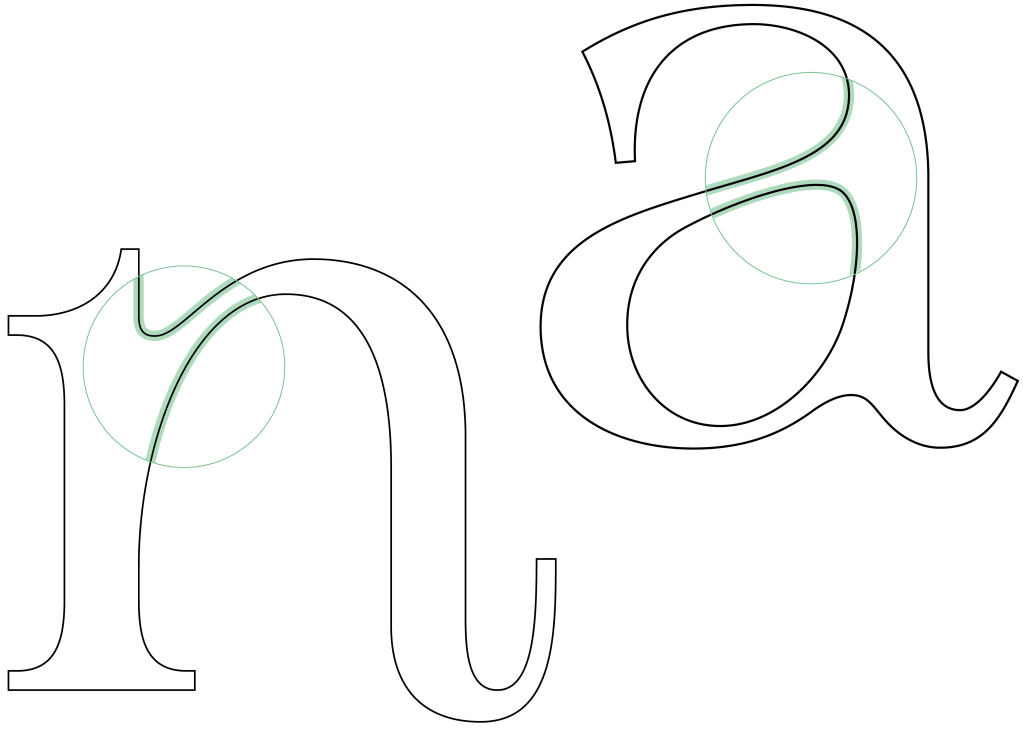 Transitions: The uneven growth of the vines was model for the transition, e.g., at the counter of the a. The harmonic transition needed a lot of sketches.