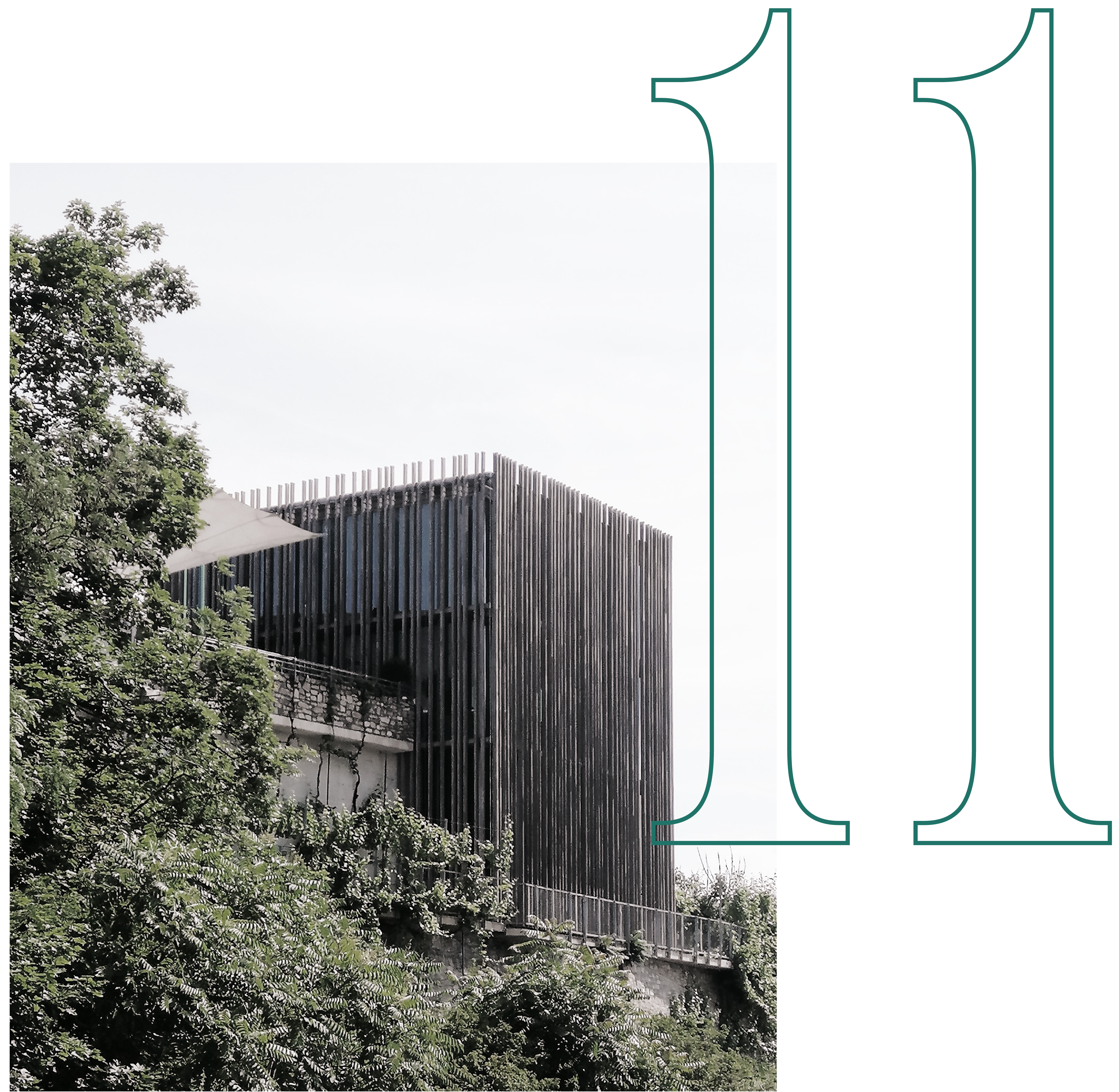WeinWerk: The architecture of that building is massive and fine at the same time. It is a transparent cube encased with wooden poles.